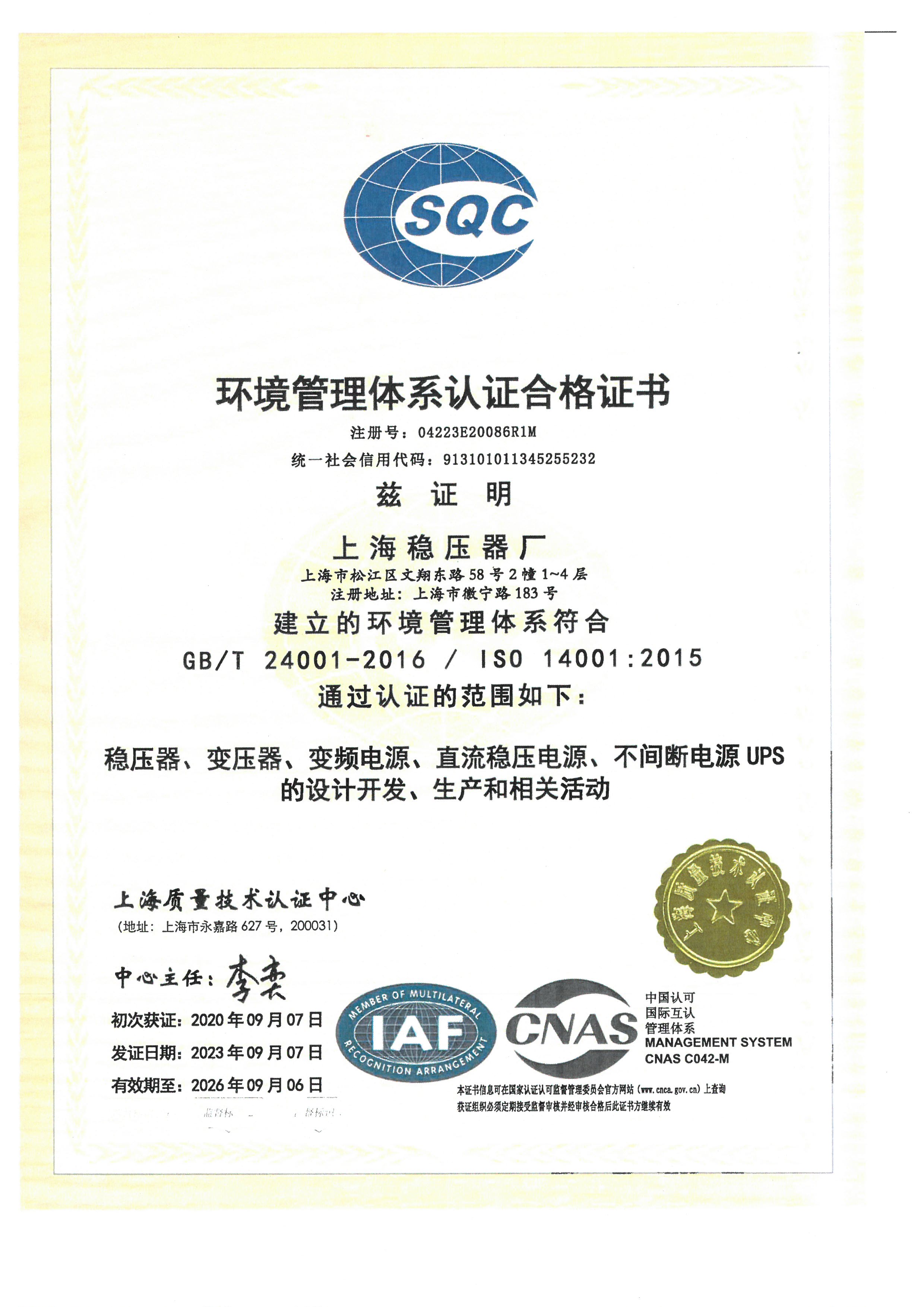 環境管理體系認證證書